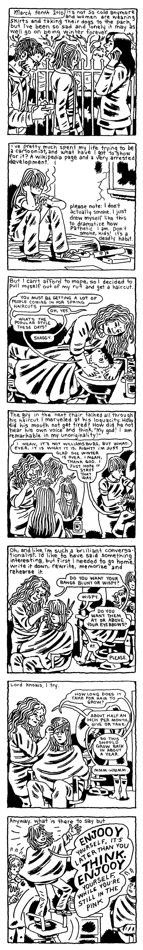 You captured so well what the end of winter feels like and also what goes through the minds of us less-talkative folks at the hair salon. Thanks for your work!