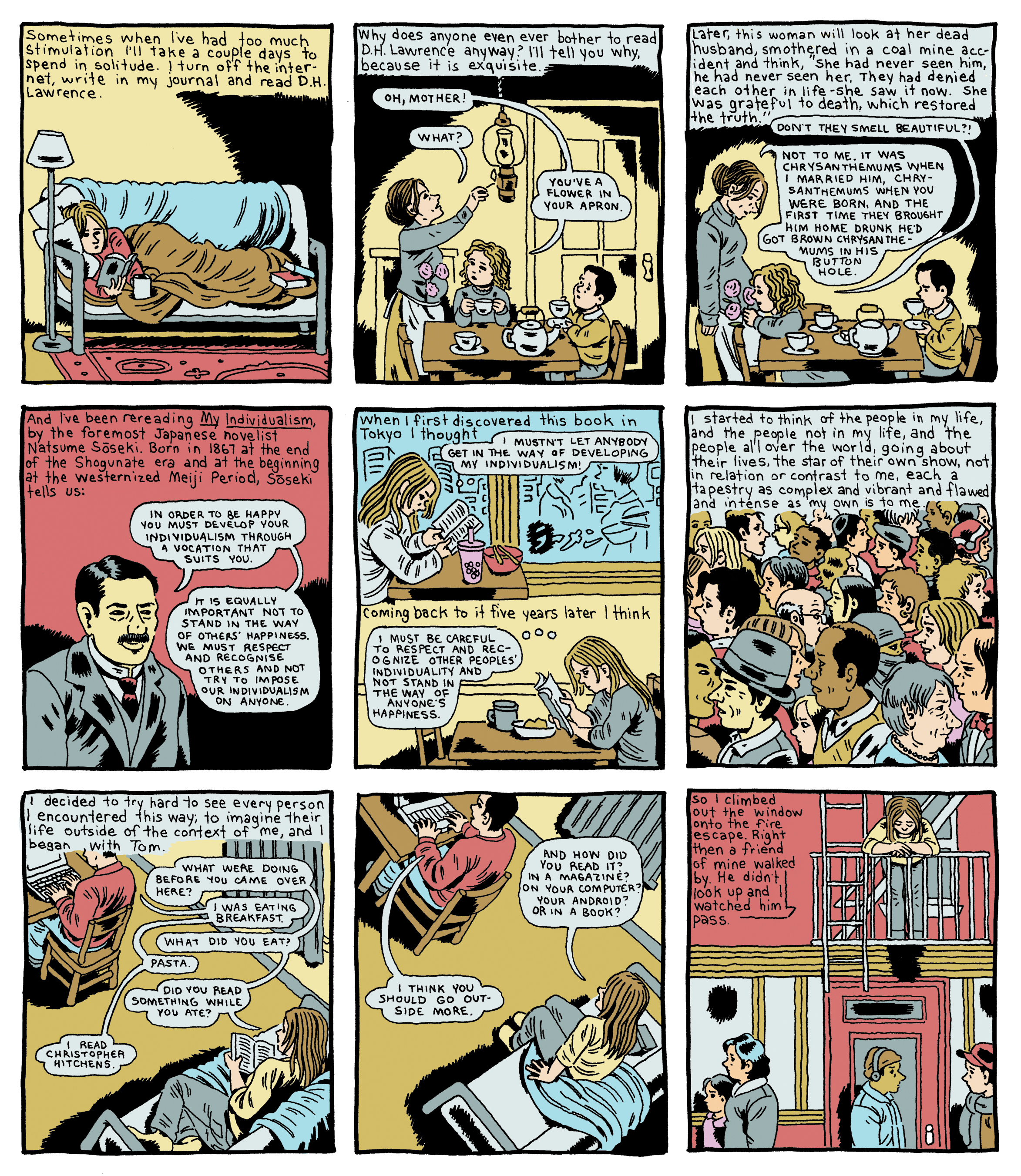 I think you’ve practiced this philosophy, unconsciously or not, in your comics. I’m always impressed with how real the characters in your fiction seem, and how sympathetically you portray the ones in your autobiographical work.