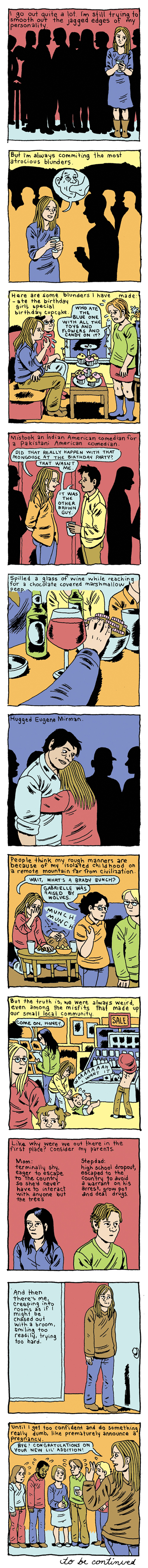 You’re a brave woman! I completely avoid embarrassing social situations by never leaving my apartment. And I guess it’s an in-joke but I must ask: what is so wrong about hugging Eugene Mirman? Dude be sweaty? Dude be angry? What gives?