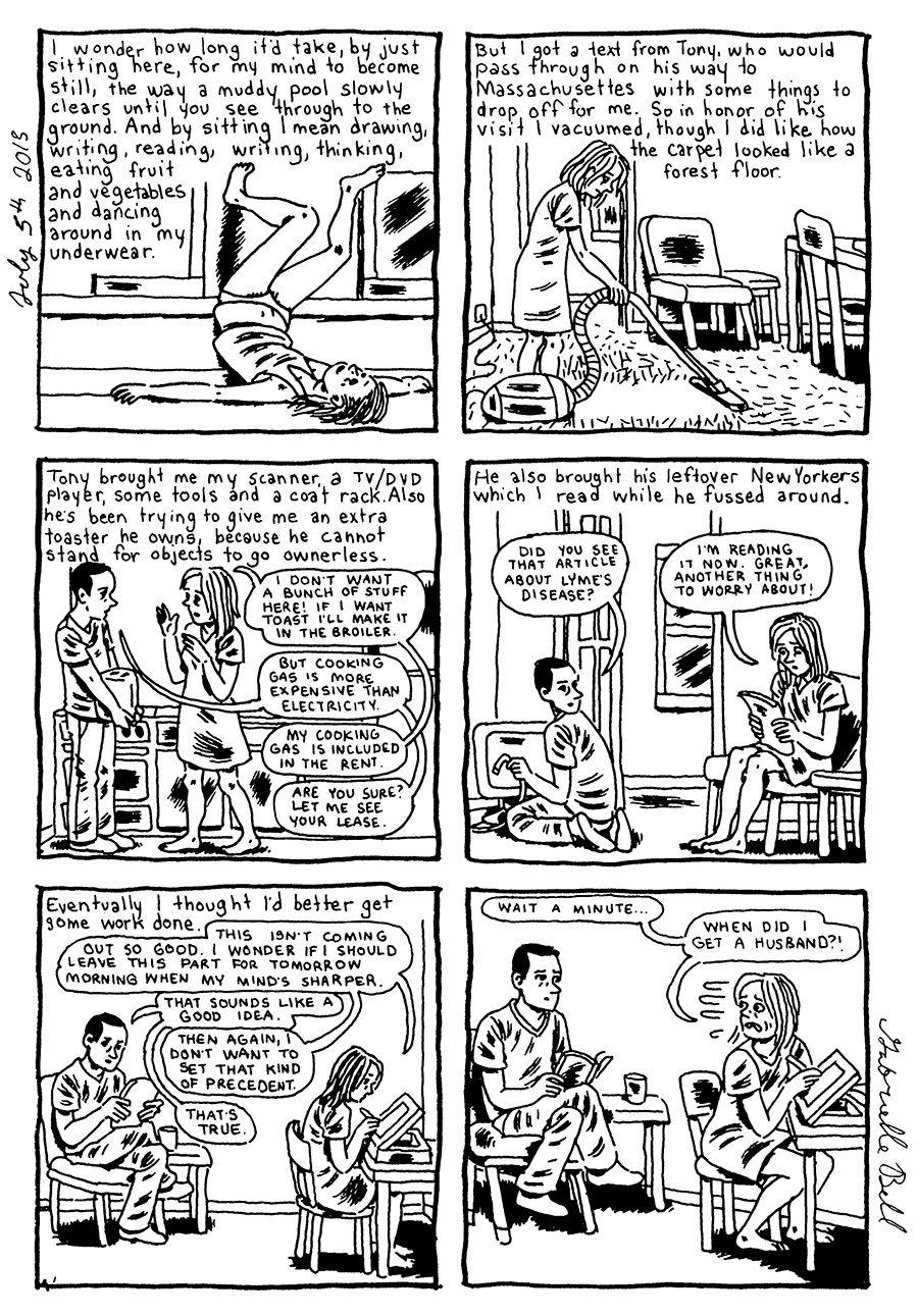 I was thinking what an enviable friendship you two have. This July diary is fantastic. I’m enjoying what seems to me to be the pared down, bare bones, honesty. That’s one of the most appealing things about your work in general. But, recently, it seems more nakedly honest.