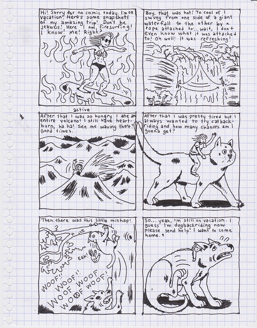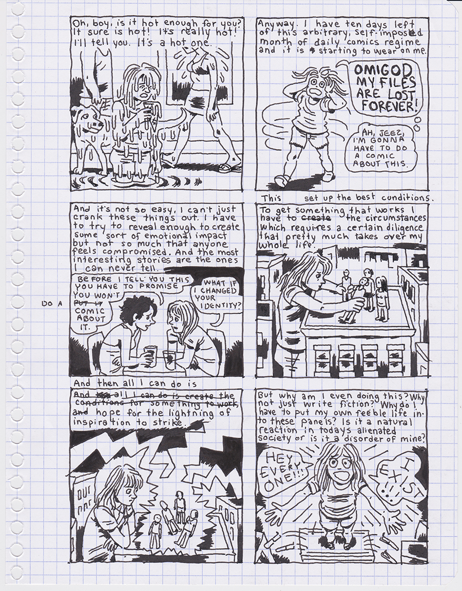 I am having a big sale of 29 of thirty one pages of my first July Diary originally posted in July 2011, now published in my book Truth is Fragmentary, at the very cheap price of one hundred dollars each, shipping included, no matter where you live! Take advantage of my poverty while you can and get a piece of my earlier, funnier work. There are some gems in there! The pages are listed below, and you can click the title of the page /buy now prompt, below each. Thank you! Oh, and here’s a new comic: